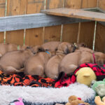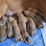 12. 7. Adélka začala rodit – máme 9 štěňátek – 5 kluků a 4 holčičky